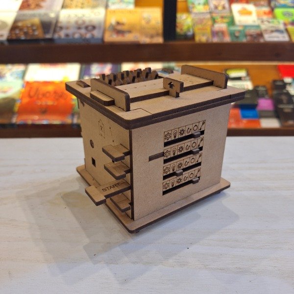 ESCAPEBOX es una caja interactiva con varios acertijos, que deben resolverse uno tras otro para abrir la caja. En otras palabras, ¡Esta caja es un escape room en un formato compacto! Todos los acertijos pueden ser resueltos mediante la lógica, no es necesario adivinar ni forzar los mecanismos.