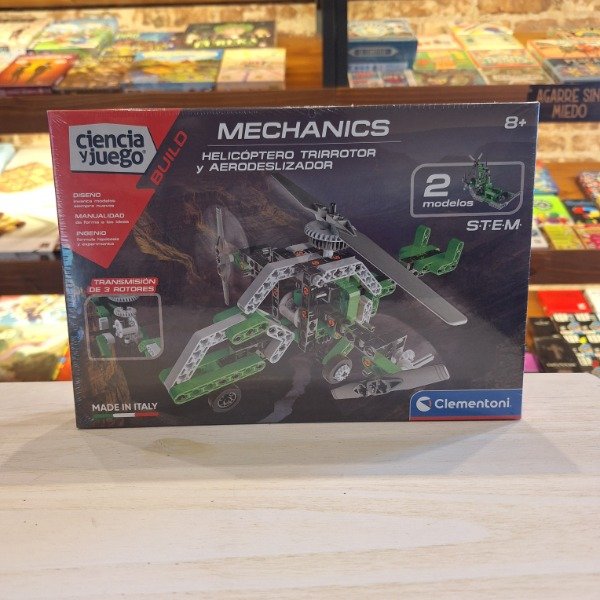Un kit científico para descubrir para descubrir todos los secretos de la aerodinámica. Con dos modelos para construir: un helicóptero y un aerodeslizador, los niños podrán descubrir cómo funciona los mecanismos de transmisión. Contiene más de 130 componentes intercambiables.